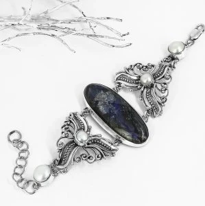 Браслет из серебра с лабрадором и жемчугом арт.1130