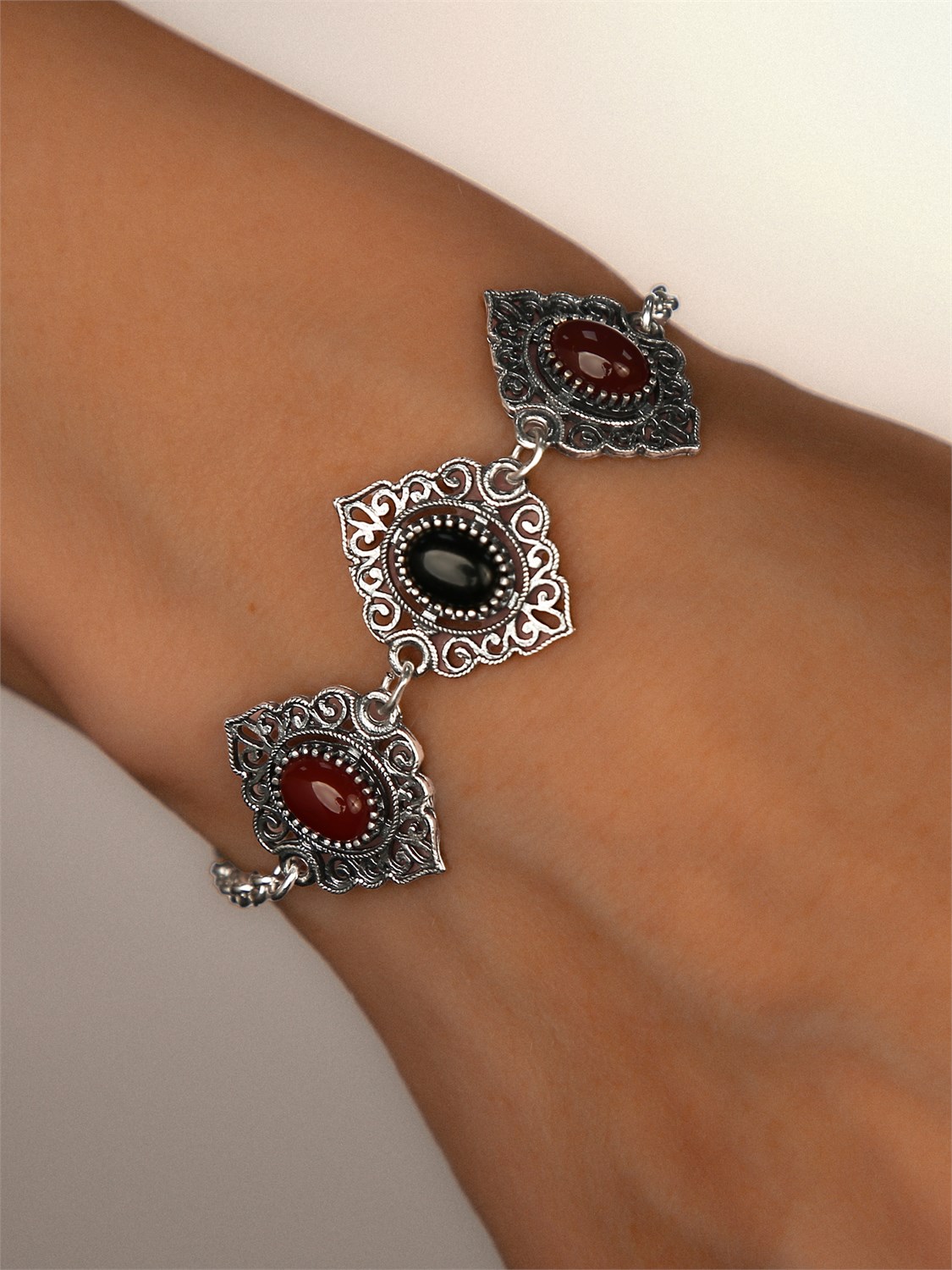 Браслет из серебра с сердоликом и агатом