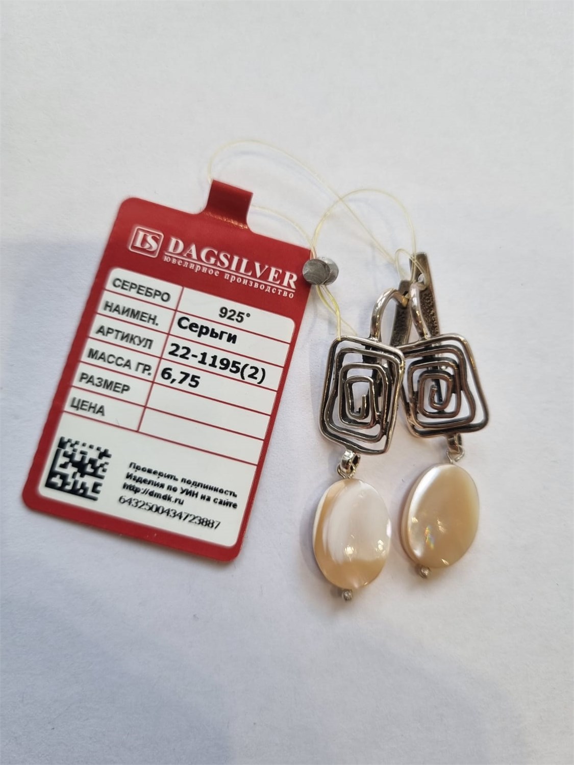Серьги из серебра с барочным жемчугом арт.3262