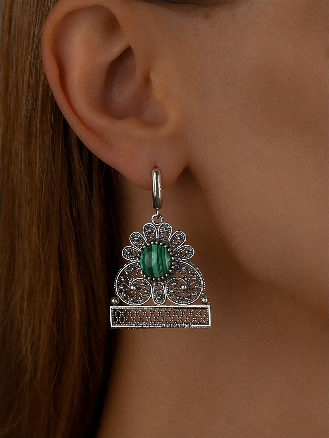 Серьги из серебра с Малахитом